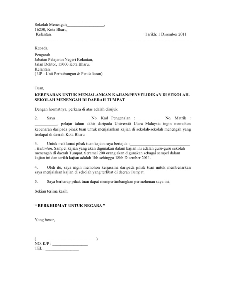 Contoh Surat Kebenaran Keluar Menjalankan Kajian Pdf